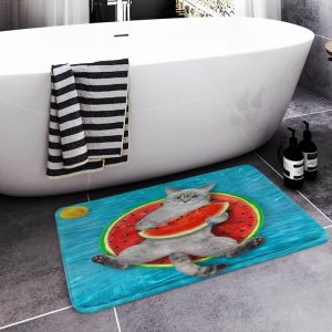 Rectangle Carton Fruits Printing Crystal Velvet Bath Mat