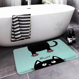 Rectangle Cats Printing Crystal Velvet Bath Mat