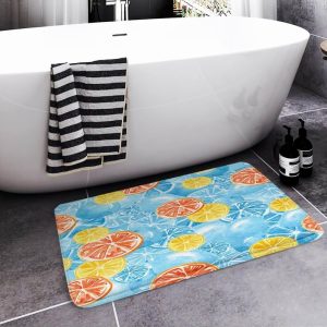 Rectangle Carton Fruits Printing Crystal Velvet Bath Mat