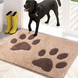 Rectangle Big Sized Dog Paws Pattern Contrast Color Microfiber Doormat