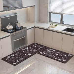 Rectangle 2pcs/set Flower Pattern PVC Kitchen Mat