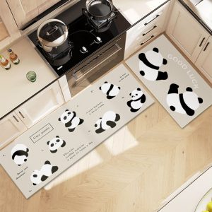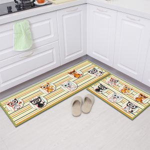 40x60cm+40x120cm, Diatomite Kitchen Mat, Kitchen MatRectangle 2pcs/set Carton Cats and Fishes Pattern Diatomite Kitchen Mat