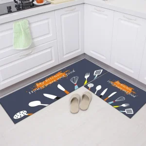 40x60cm+40x120cm, Diatomite Kitchen Mat, Kitchen MatRectangle 2pcs/set Kitchen Utensils and Food Pattern Diatomite Kitchen Mat