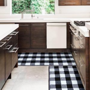 40x60cm+40x120cm, Kitchen Mat, Microfiber Kitchen MatRectangle 2pcs/set Grid Pattern Contrast Color Microfiber Kitchen Mat