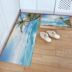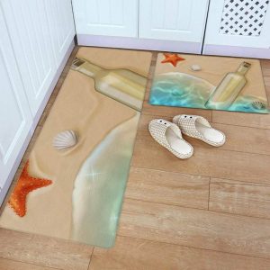 45x75+45x120cm, Kitchen Mat, PU Kitchen MatRectangle 2pcs/set Ocean Pattern Printing Thick PU Kitchen Mat