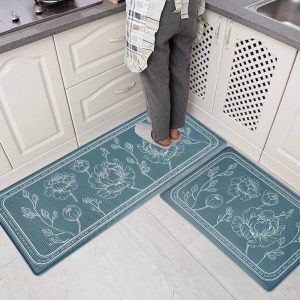 Rectangle 2pcs/set Flower Pattern PVC Kitchen Mat