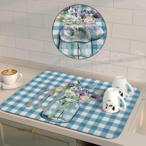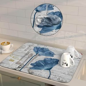 30x40cm, Diatomite Dish Drying Mat, Table MatRectangle Beautiful Flower Printing Diatomite Dish Drying Mat