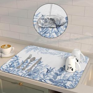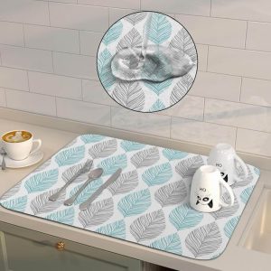30x40cm, Diatomite Dish Drying Mat, Table MatRectangle Beautiful Leaf Printing Diatomite Dish Drying Mat