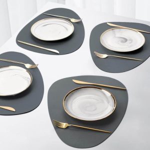 30x45cm, PU Table Mat, Table MatRectangle Pure Color Golde Frame Pattern PU Leather Dining Table Mat
