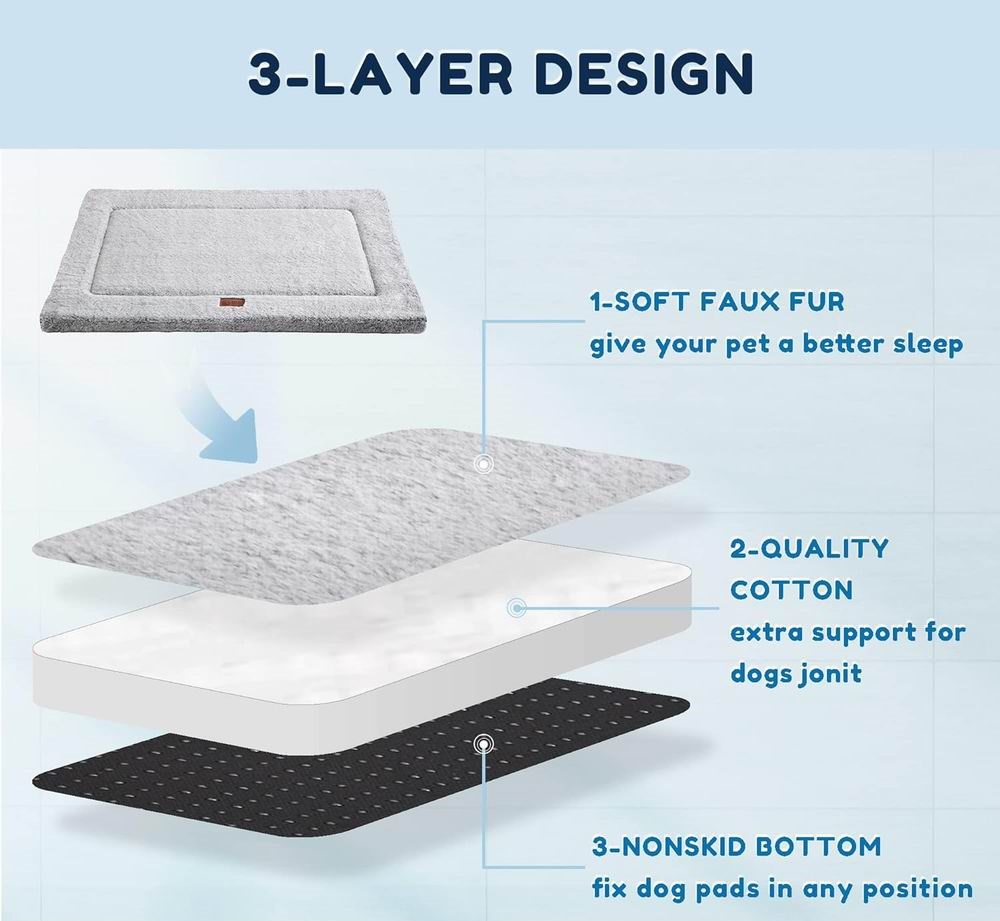 - Good Safety-The bottom of the dog mat is equipped with a separate antiskid fabric, which can well fix the dog crate mat in place, prevent movement and displacement, and ensure the safety of the dog at all times.