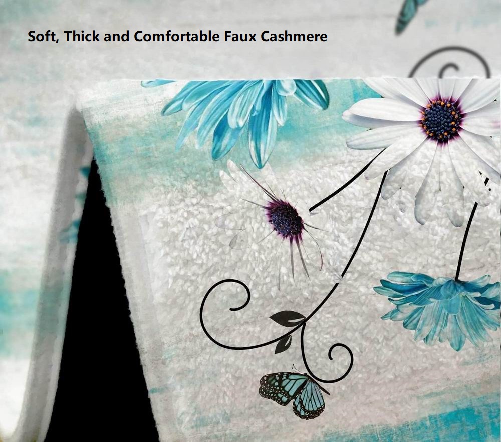 Rectangle Flowers Pattern Faux Cashmere Bath Mat