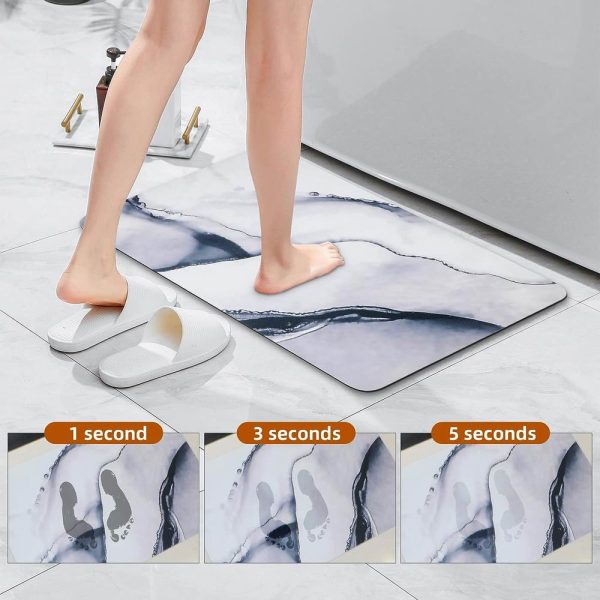 • Quick Dry â€“ Numerous tiny pores within the bathroom floor mat allow water evaporates quickly in the natural air. Usually, watermarks can magically vanish within a few minutes. It won’t be damp when the next one steps on.