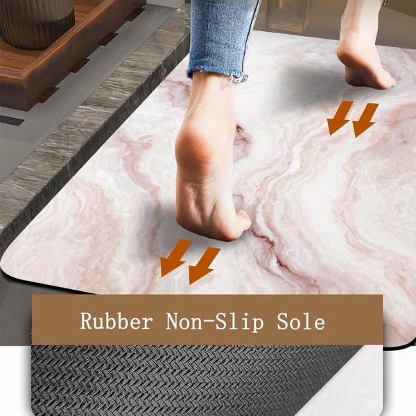 • Anti-Slip â€“ Rubber backing makes your bath mats for the bathroom nonslip even on wet floors. The innovative leather-like surface looks like a diatomaceous earth bath mat but feels like Chamois leather, you won’t feel cold when you step on the bath rugs for the bathroom in cold weather.