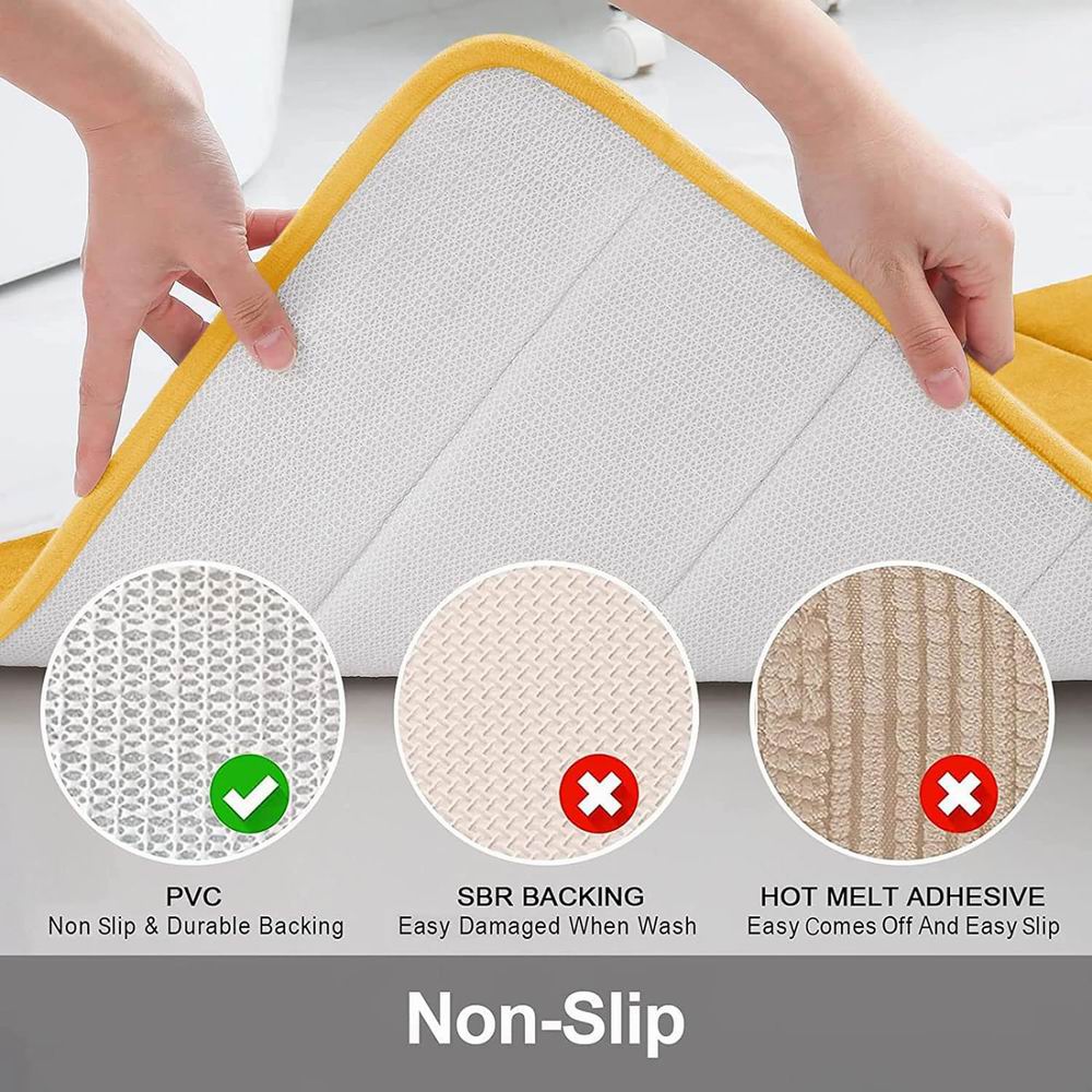Anti-slip-Feature a non-slip mesh back to prevent the mat from shifting and skidding, and the PVC back prevents water from seeping to the soft surface.