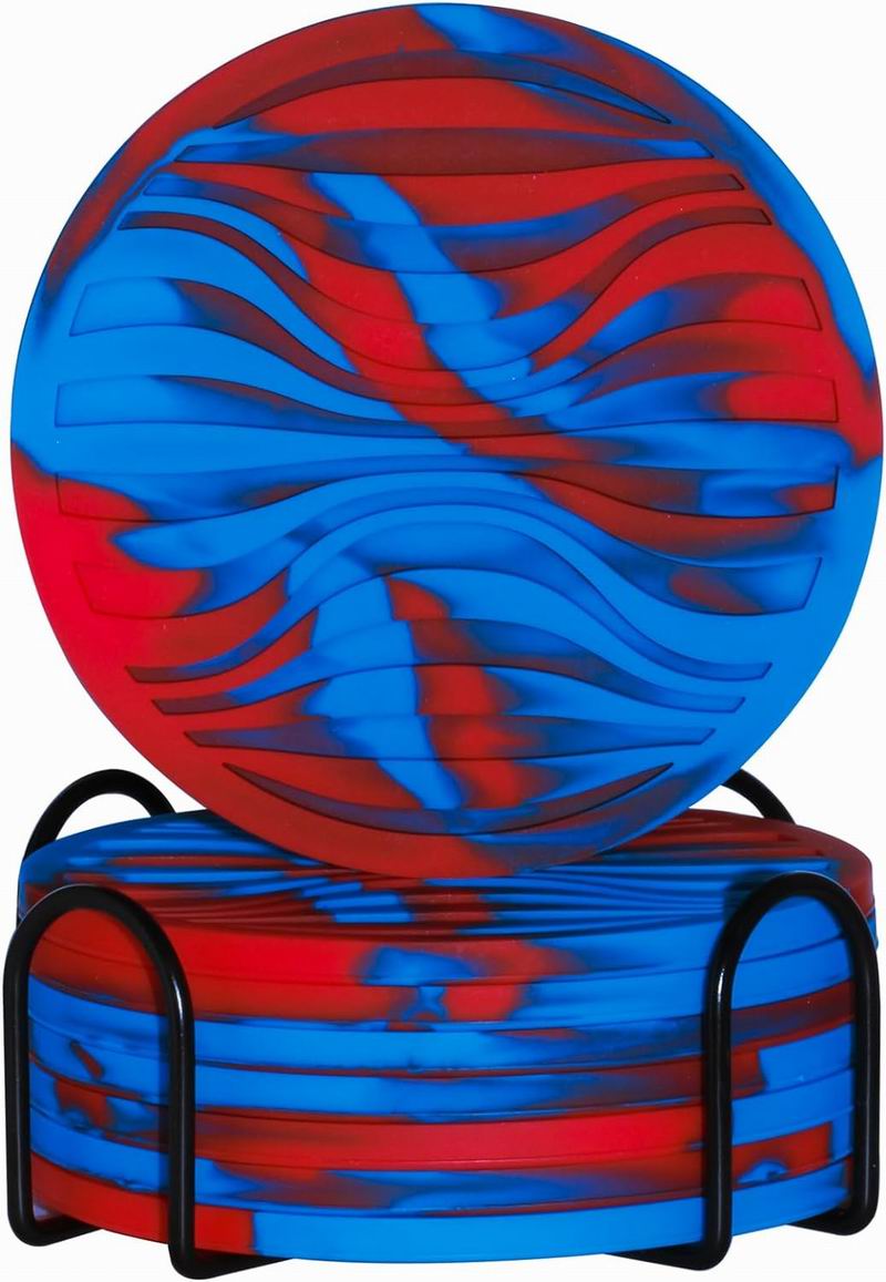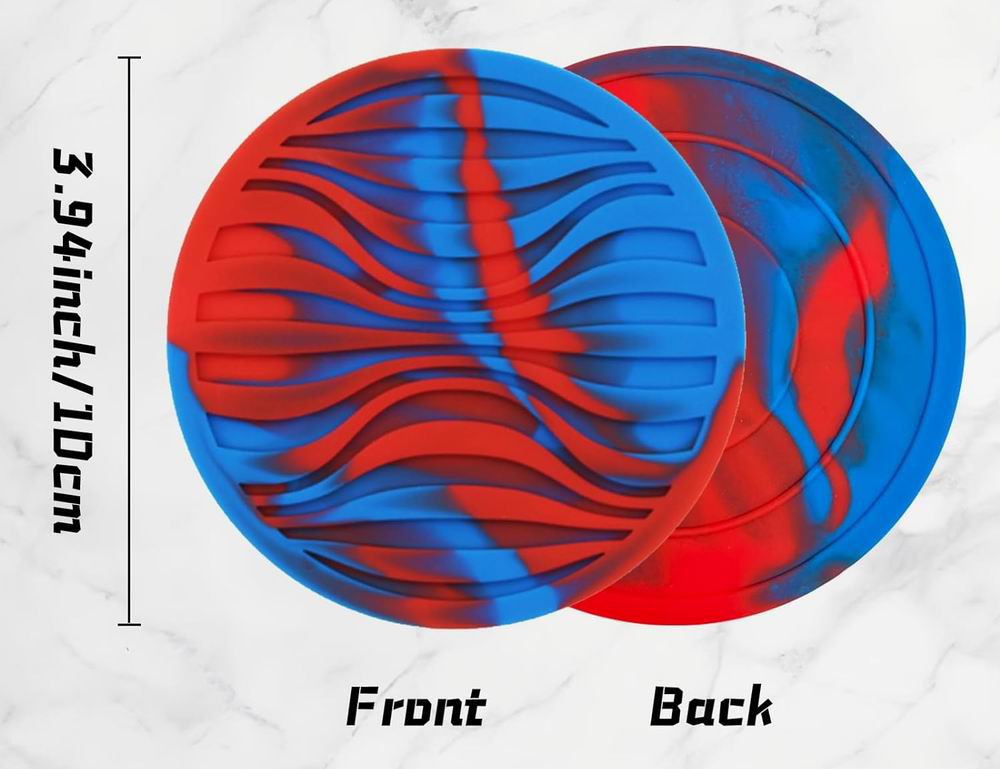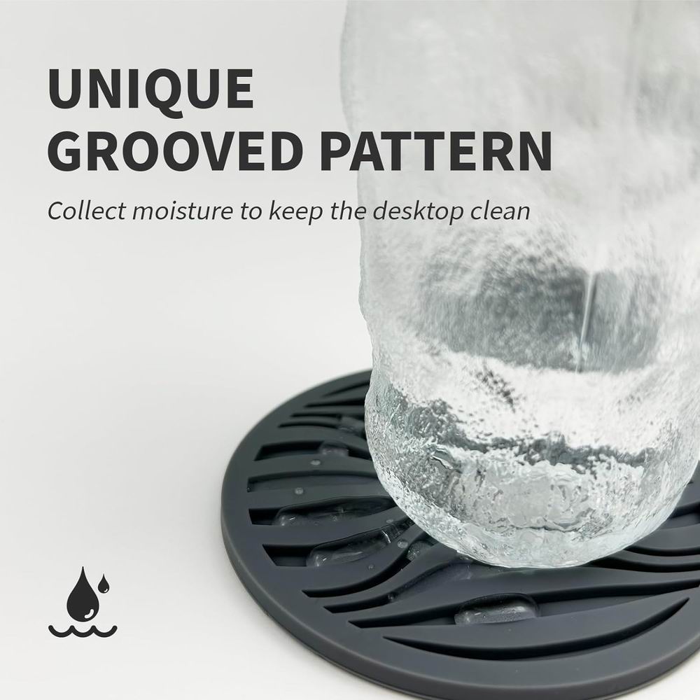 - Non-Slip-The top of the round silicone coaster is designed with a deep tray groove pattern and can prevent the cup from sticking to the coaster while also containing leaking liquids.